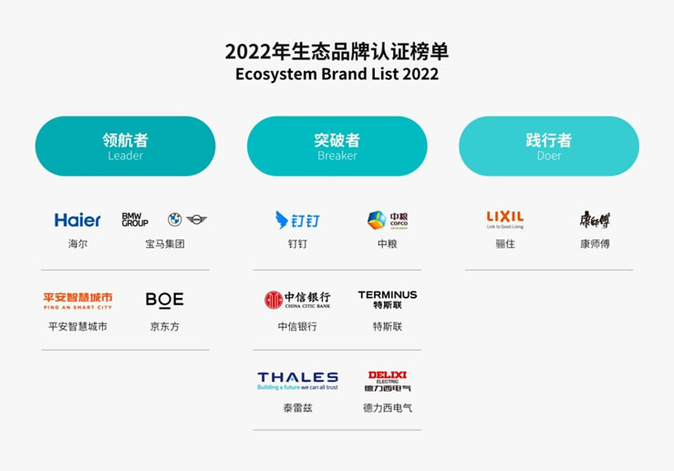 “2022年生态品牌势能图”显示,目前全球获得生态品牌认证的品牌中,来自中国的海尔、京东方、平安智慧城市以及德国的宝马集团获评“领航者”,其生态品牌实践成果成为全球品牌进化的标杆,发挥着导向与示范作用。同时,在全球首批成功获得生态品牌认证的12个品牌中,中国品牌共计占位9席,入选数遥遥领先。由此可见,中国品牌在生态品牌新范式的探索发展上,已经呈现出初步的“领头雁”效应,展现出智能经济时代主动拥抱变化、引领发展趋势的强大力量。